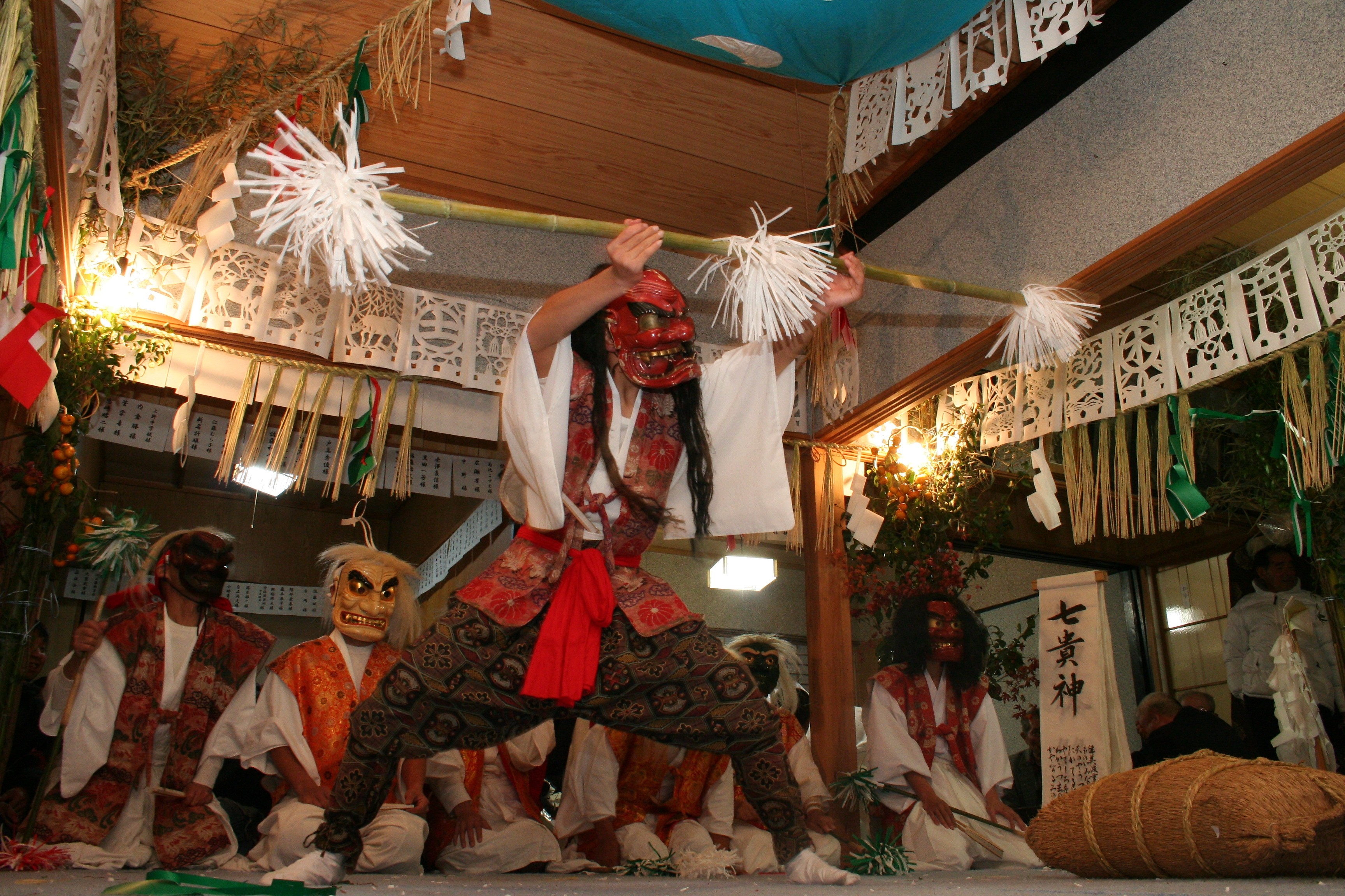 Every evening of the year between 8 – 9pm, the Takachiho Yokagura Preservation Society performs excerpts from the traditional yokagura (夜神楽) dance performances at Takachiho Shrine. The theatrical performances are taught from generation to generation and use amazing costumes and masks that have been passed down in this long tradition as well. The full traditional yokagura, done in the fall, is comprised of 33 dances performed overnight. The yokagura asks for good harvests and tells the story of the Shinto God.